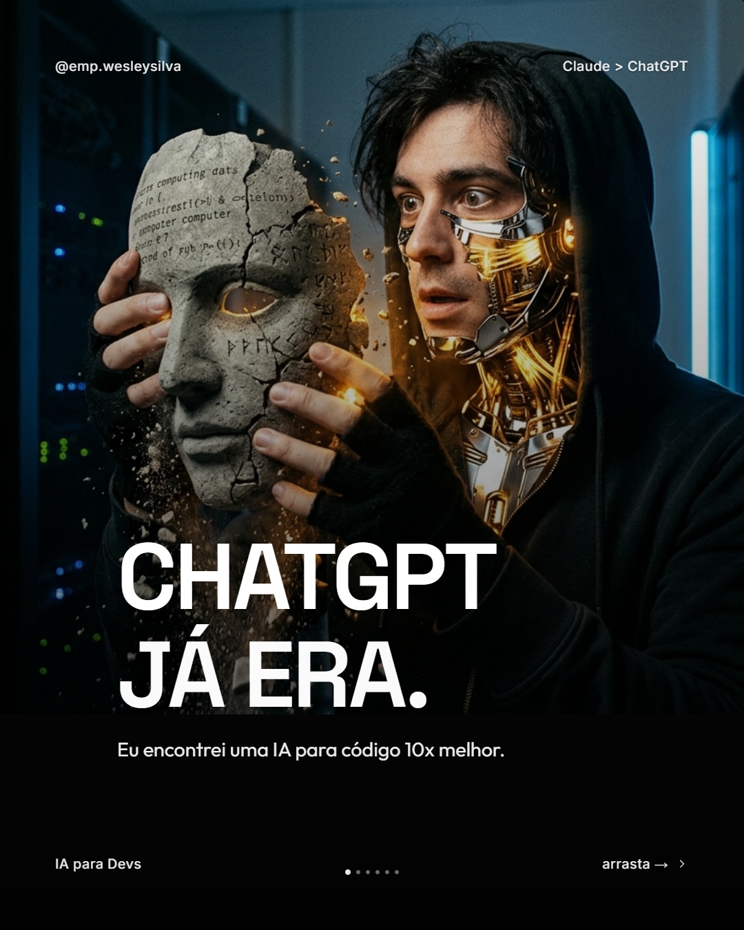 Enquanto você gasta 2-3 horas no Canva tentando fazer um post bonito, seus concorrentes estão usando IA para criar 10 carrosséis virais no tempo que você faz 1.