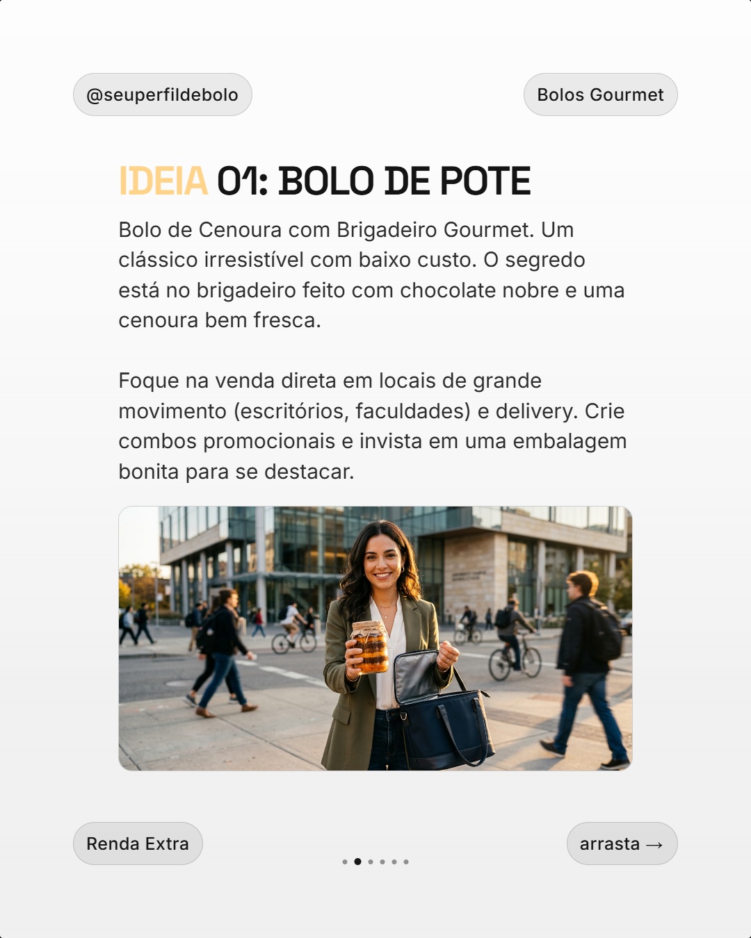 O fluxo é pensado para você produzir vários carrosséis na mesma sessão — menos tempo em design, mais tempo vendendo ou criando.