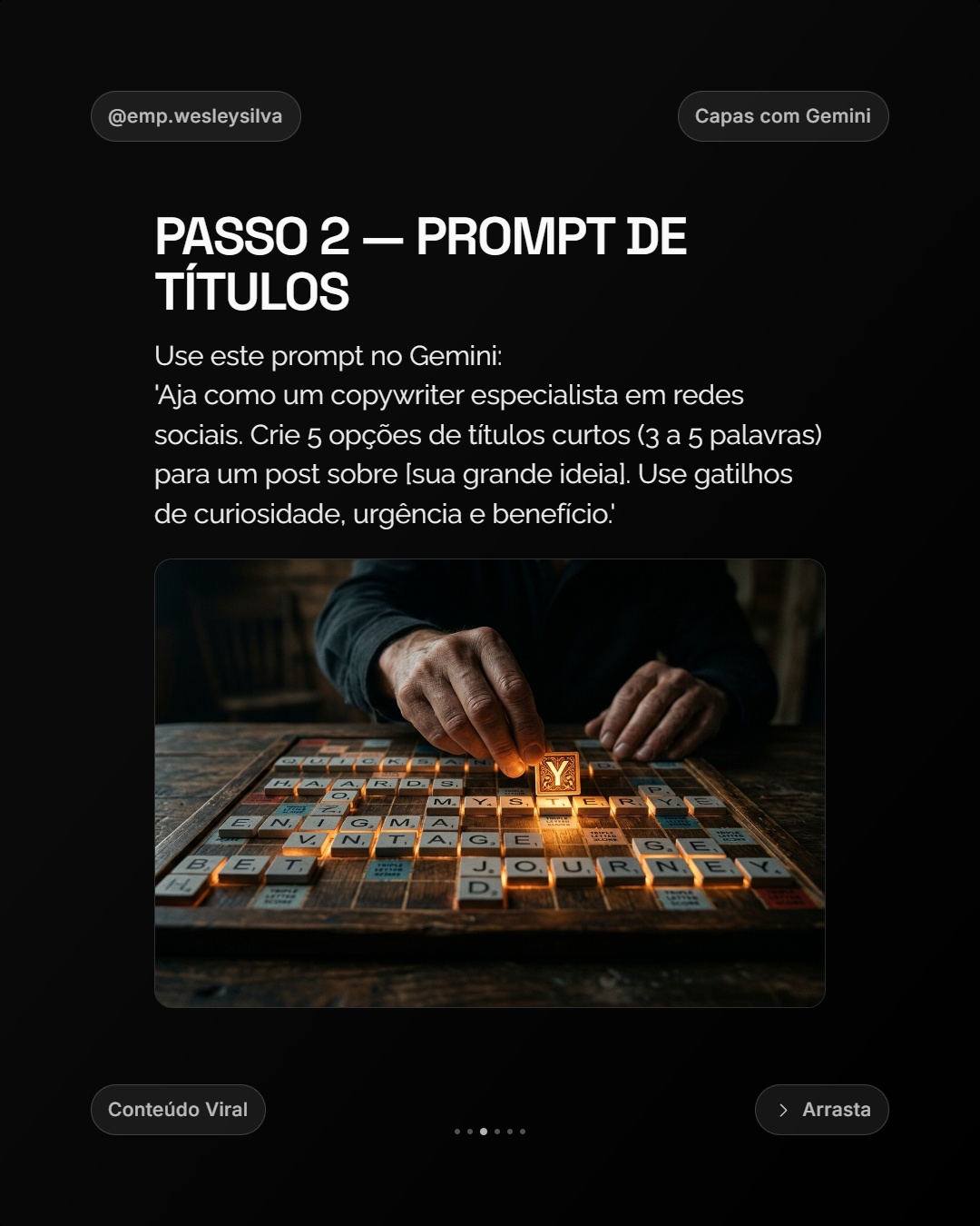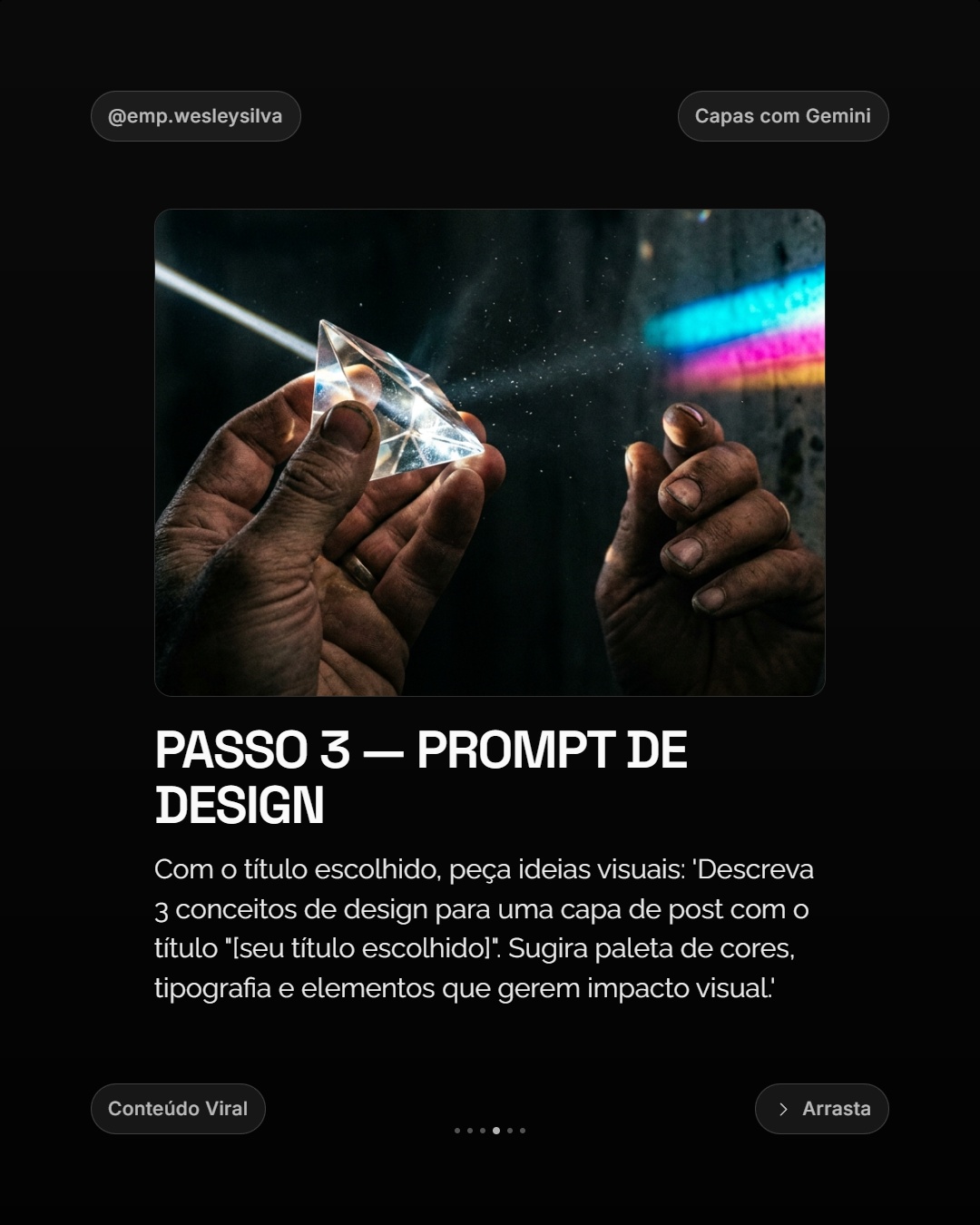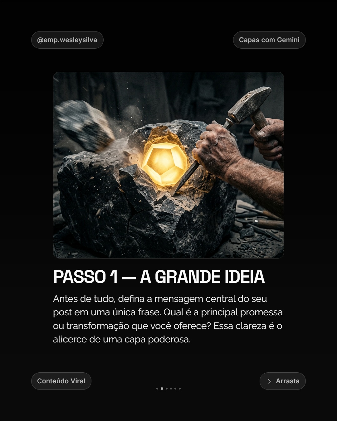 3 passos. 3 minutos. Carrossel viral pronto.